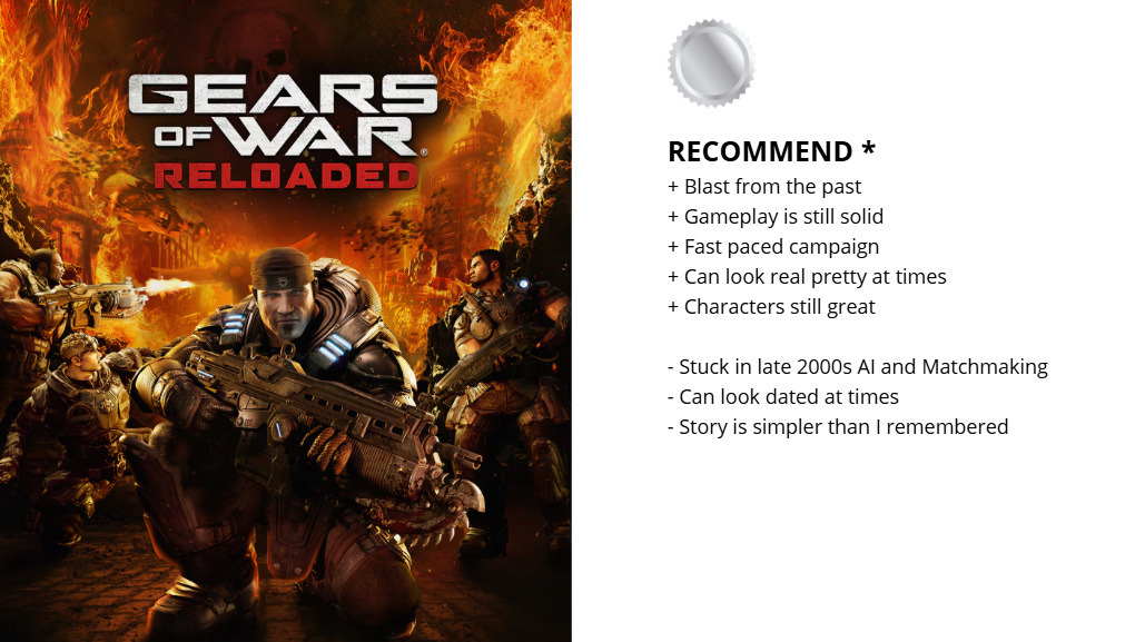 This is a quick review of the remaster of the semi-remake Gears of War: Ultimate Edition. Since this is a re-release, I’ll be doing a much faster review.