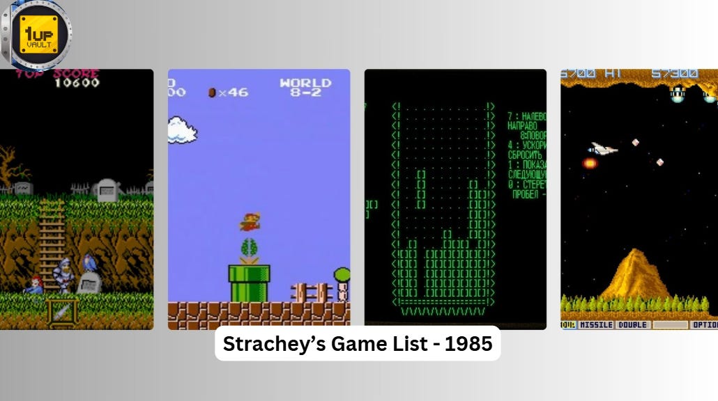 Strachey’s List is my list of the most acclaimed, consequential, and influential titles of all time. There is a max limit of 20 games per year. As always, this is all my opinion and research. The list is named after Christopher Strachey, the first video game developer.