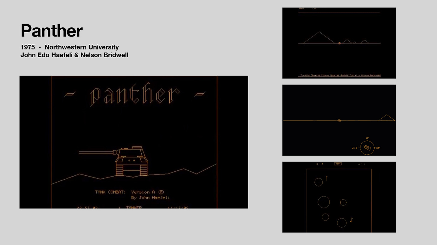 Another PLATO system game that showed the future of multiplayer gaming. Panther is a tank simulation game that pits players in team deathmatches. Each player in the team has their own special skills, and they must work together to win. It was a game that was definitely ahead of its time.