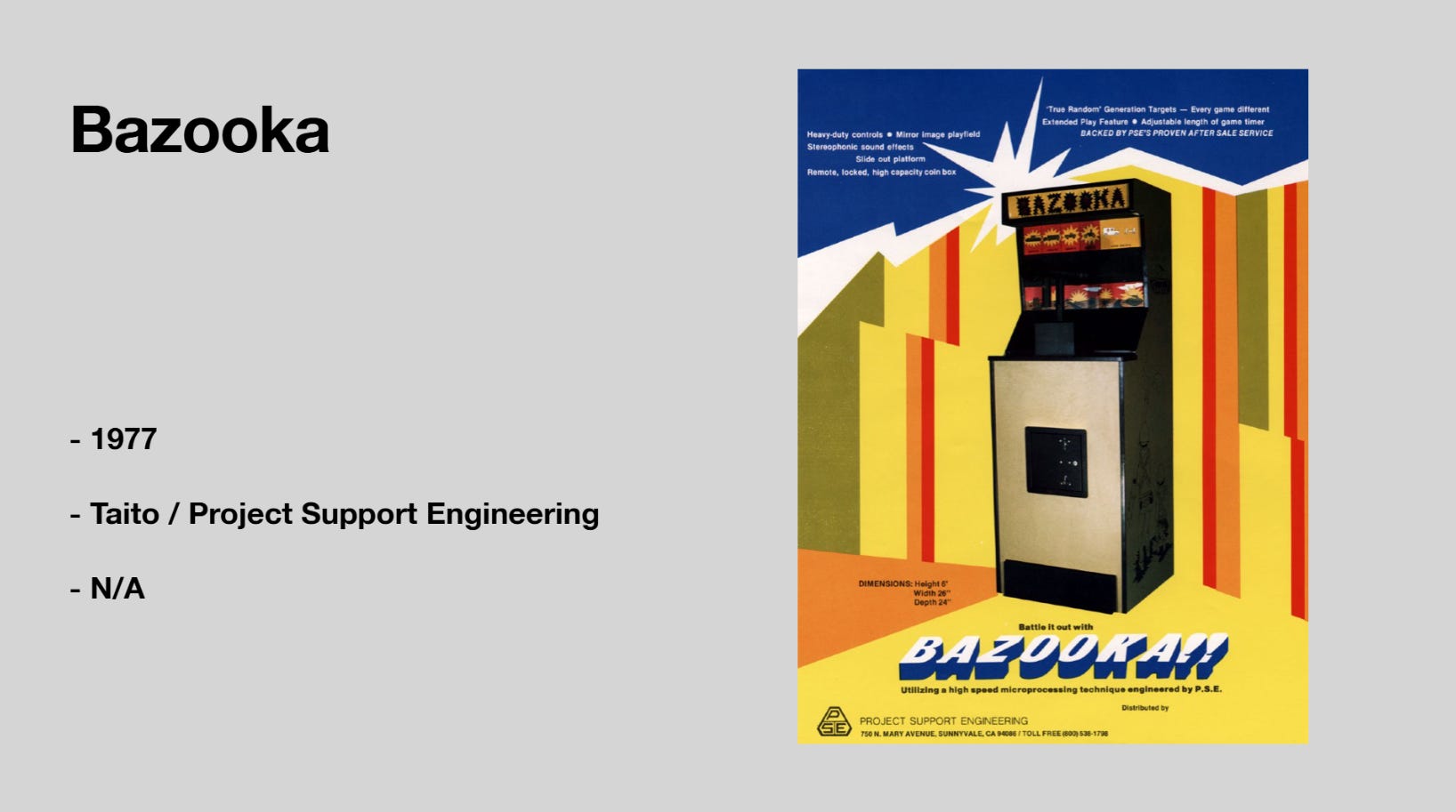 Another game that has surprisingly little information yet was a success at the arcades. Bazooka had you target tanks and enemies with a replica bazooka, making it what we know today as a light-gun game. Players also had to be careful not to hit medical personnel and vehicles. Despite the lack of documents and information, Bazooka was a pretty popular game at the time, and as mentioned earlier with Combat, showed the American public was open to exploring militaristic video games as Vietnam drew to a close.