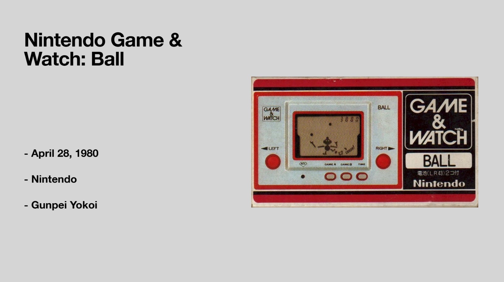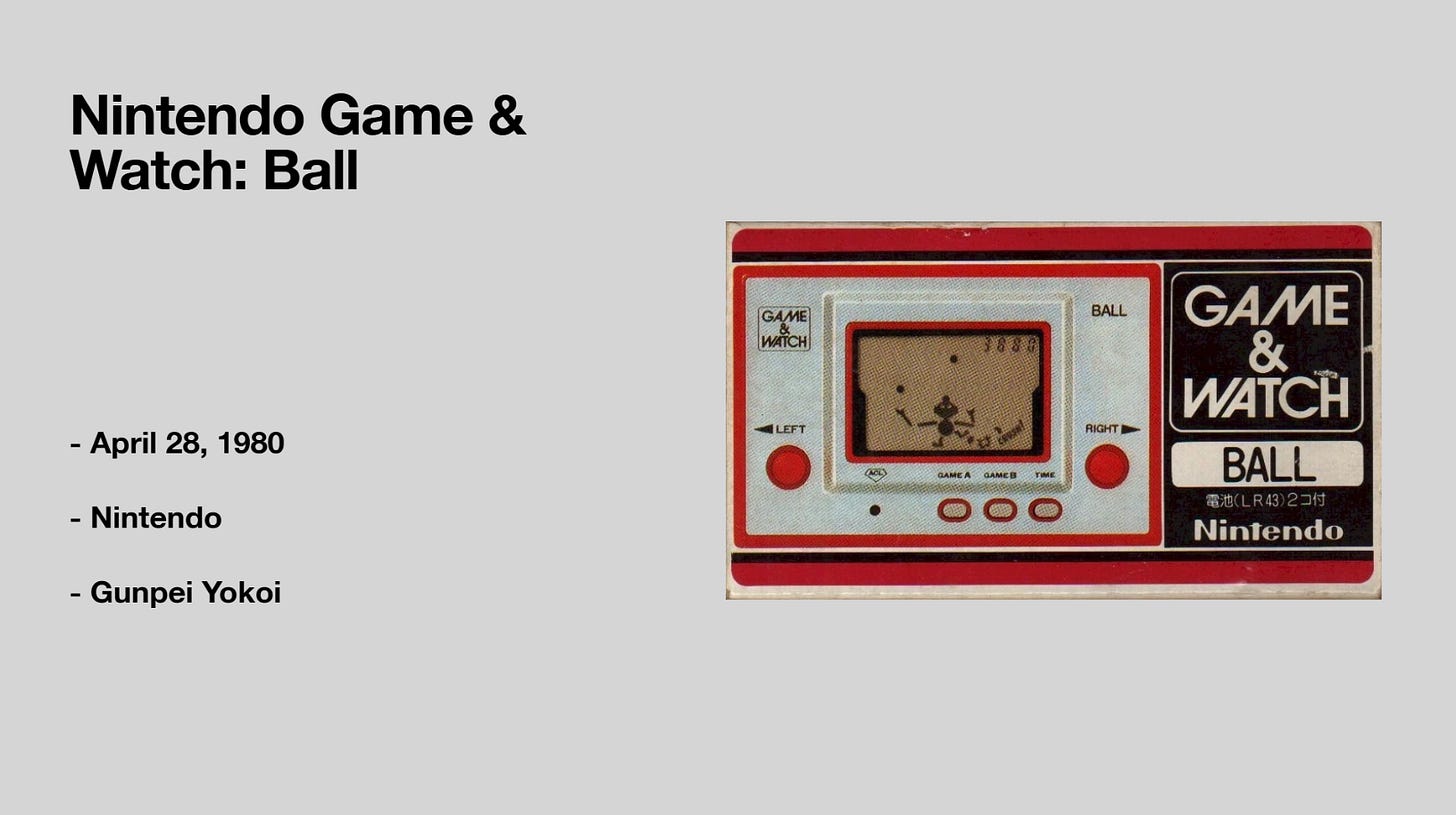Nintendo launched their Game & Watch handheld systems out to the market in 1980. The systems used similar LCD type technology that calculators used, offering many different games. The first one was called Ball, and introduced the concept, as well as the character Mr. Game and Watch. This simple juggling game became that match that would get the most infamous video game company to go from a toy company to revolutionizing the industry.